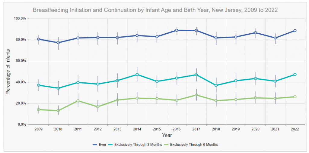 - Breastfeeding Initiation and Continuation: https://www-doh.nj.gov/doh-shad/indicator/summary/Breastfeeding.html
