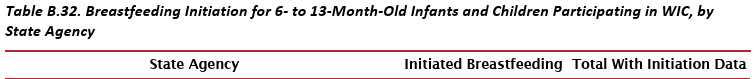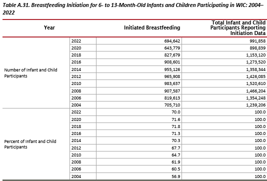 - Breastfeeding Initiation Rates by State, 2004–2022, Excel spreadsheet with all states’ rates
